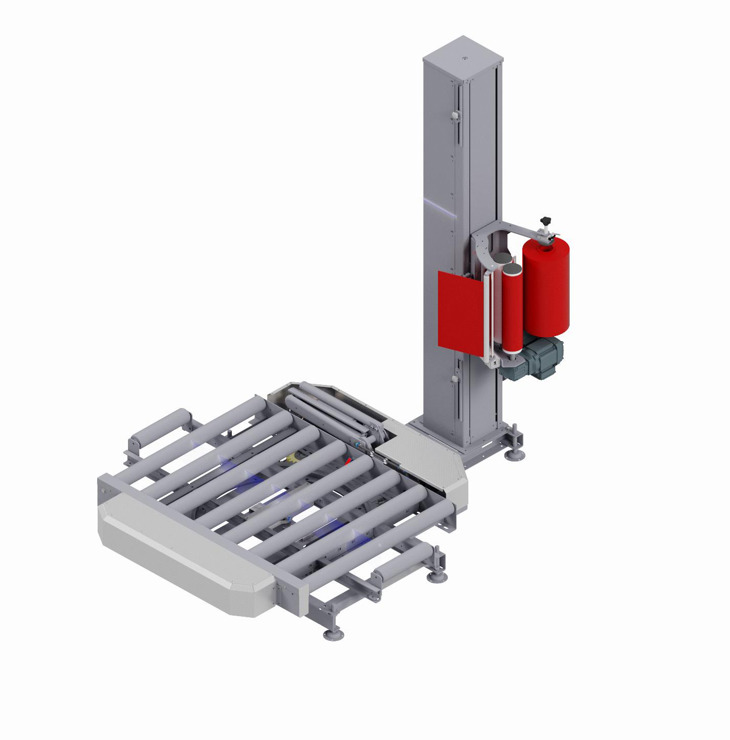 En J2000 folievikler, som kan integreres til både rulle-, kæde- og båndbaner. Optioner kan tilpasses til folievikleren, så den kan passe til omgivelserne og krav til folieviklingen.