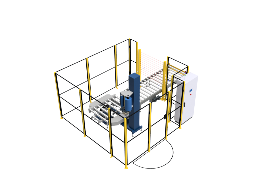 Cellen kan fungere som en selvstændig enhed, og tilpasses enten til manuel påsætning, eller en fuldautomatisk løsning integreret med AGV- eller MIR-systemer. Denne fleksibilitet sikrer en effektiv pakkeproces, der matcher specifikke produktionskrav.